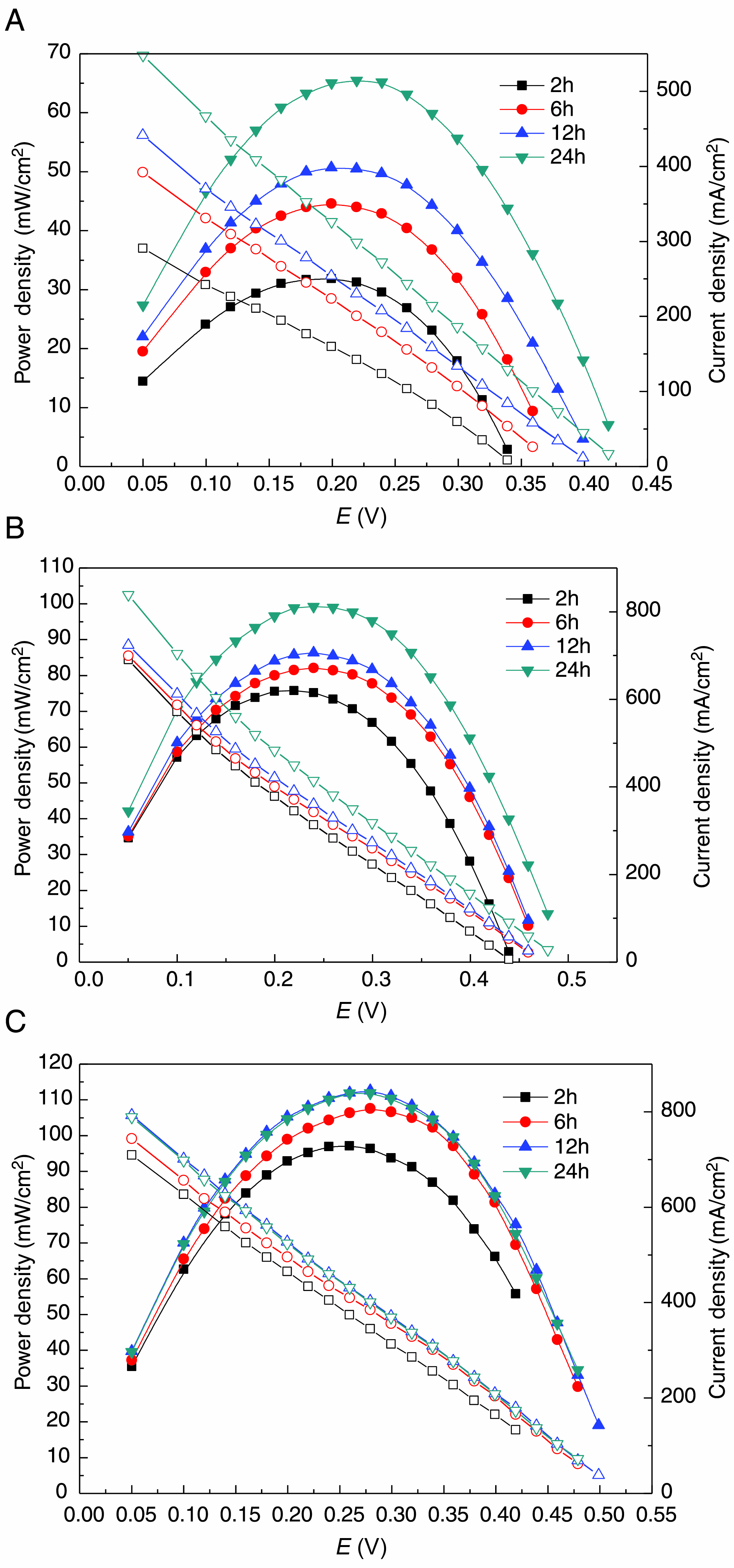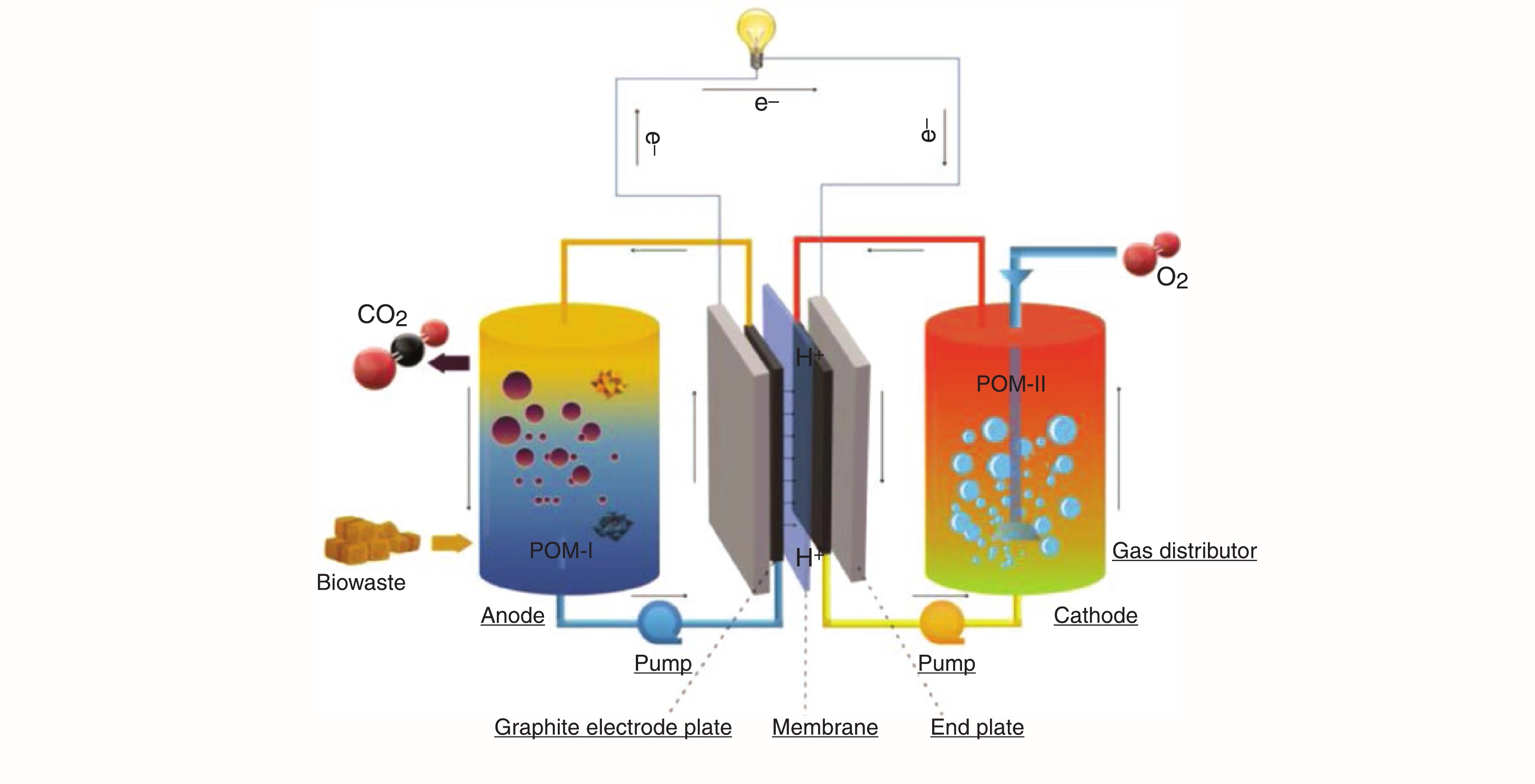 农业可燃废弃物由于其有机质含量高,热值高,被视为一种具有极大潜力的能源来源。随着中国经济的迅猛发展,能源需求量急剧增长,与此同时环境保护的要求也越来越严格。这些相互竞争的要求使人们迫切需要寻找一种绿色环保的方式从农业废弃物中获取能源。在本项研究中,开发了一种全新的把农业废弃物直接作为燃料的液体催化燃料电池技术。这种类型的液流燃料电池可以直接将农业可燃废弃物在常压下转换为电能,反应温度为80~150 ℃,是一项绿色环保的新型电池技术。杂多酸作为催化剂和电荷载体驱动液流电池。以小麦秸秆和酒糟代表农业可燃废弃物的主要组成成分进行了电池效能研究。实验结果表明,以农业可燃废弃物为燃料的液流燃料电池能量密度高达111 mW/cm2,是微生物燃料电池的数千倍之多。