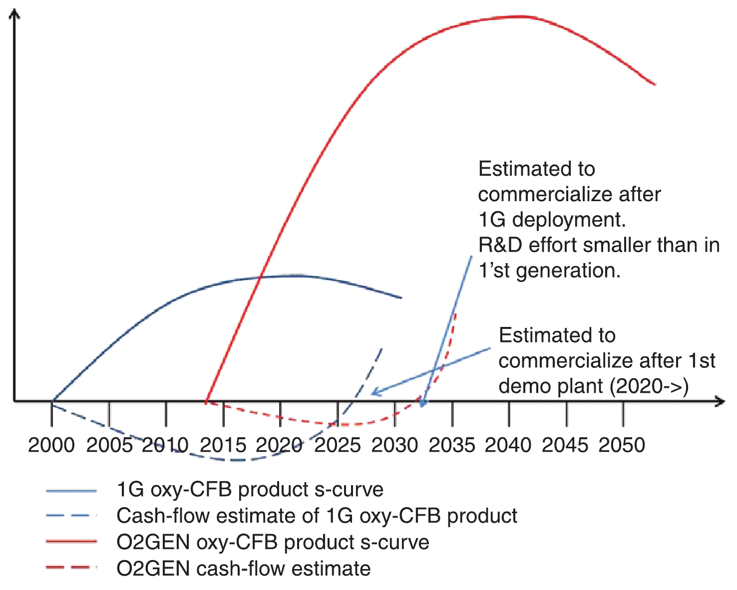 本文讨论了用于碳捕集和封存的二代富氧燃烧技术在不同阶段的市场潜力评估结果,其中增加氧含量可以提高效率并且延长产品生命周期。需要强调的是,一项开发时间很长的能源技术要商业化应用,会面临很多风险因素。同时,外部市场环境、法律法规和二氧化碳的市场交易价格等也会造成各种问题,需要解决。本文的研究是基于一种二代循环流化床富氧燃烧技术,研究内容包括SWOT分析以及产品生命周期估算。以循环流化床富氧燃烧技术为基础,二代富氧燃烧技术的商业化很大程度上取决于相关能源市场环境的技术、社会和经济等各方面的因素。现在,欧盟的二氧化碳排放交易价格不到10欧元/吨,这不利于CCS技术的投资。二氧化碳封存还面临公众的反对和欧盟法令方面的限制。估计此技术的商业化应用时间将在2030年,到时候二氧化碳交易价格需要在30欧元/吨左右。要使二代循环流化床富氧燃烧技术在商业上变得可行,则还需要相关的技术开发或政府补贴。由于技术的价格发展趋势会受到欧盟环境政策、政治和公众接受度等多种外部因素的影响,因此要投入市场实用,技术进步和政府补贴等都非常重要。