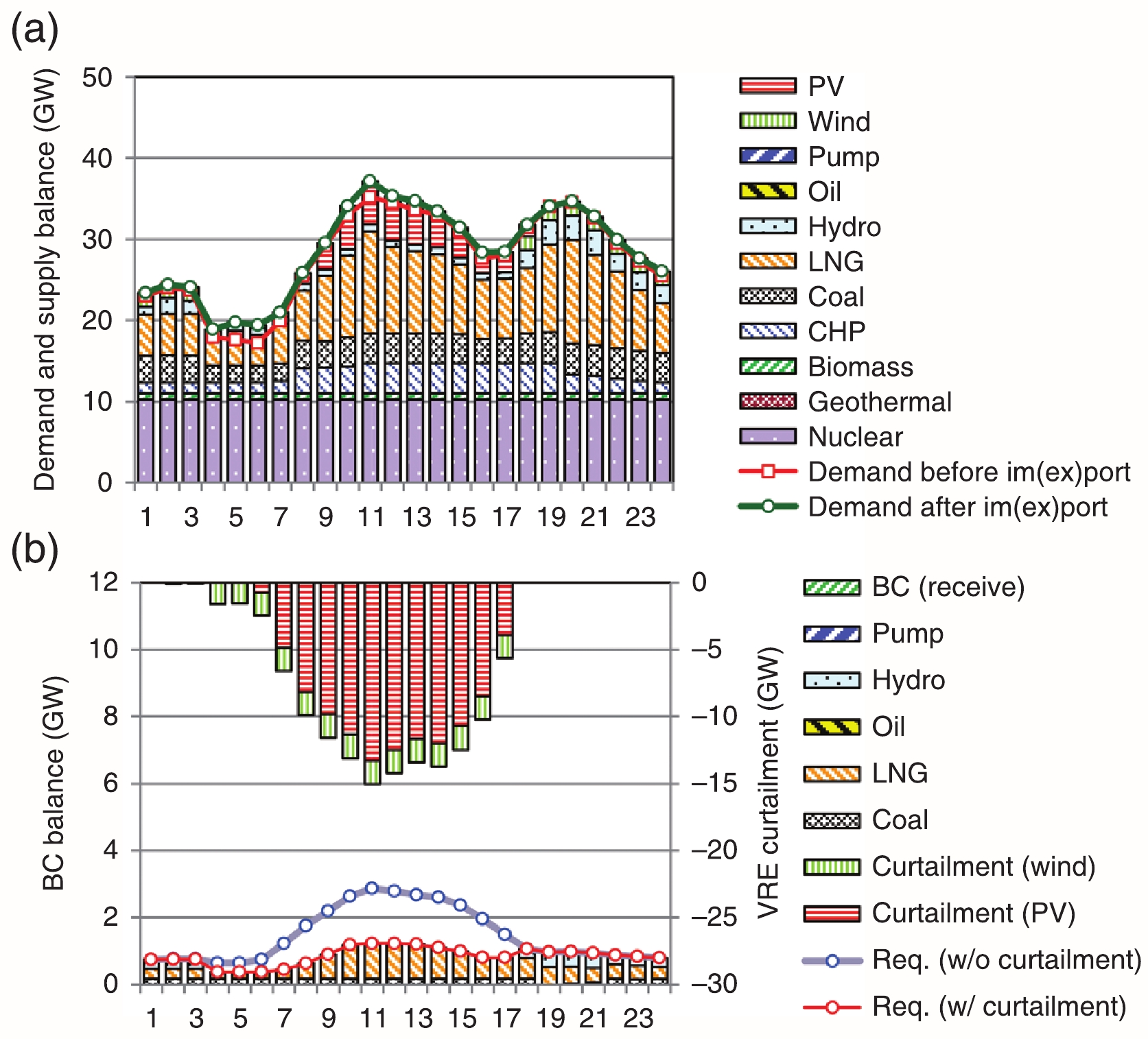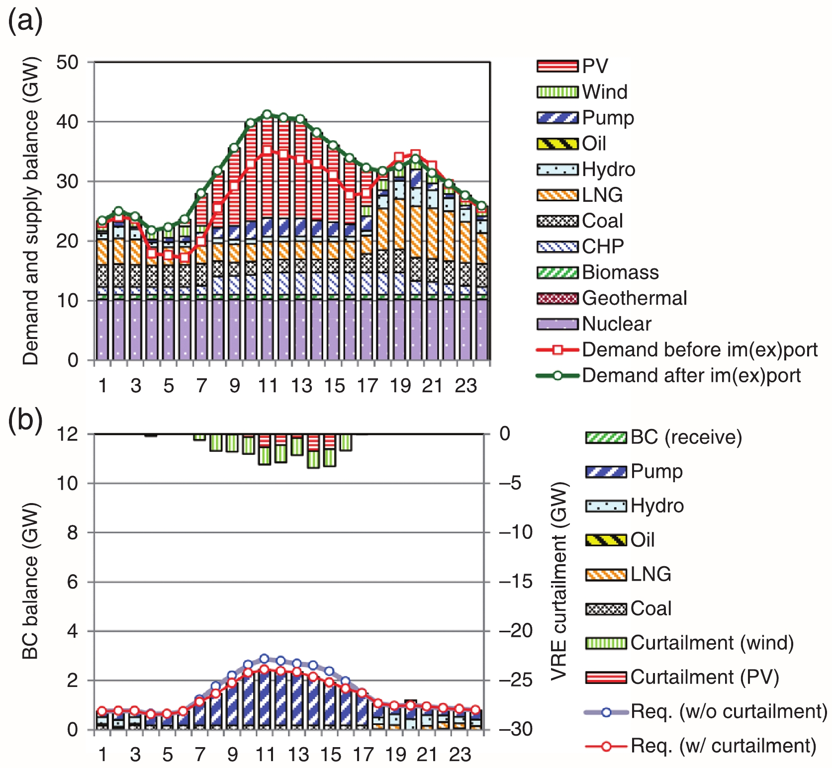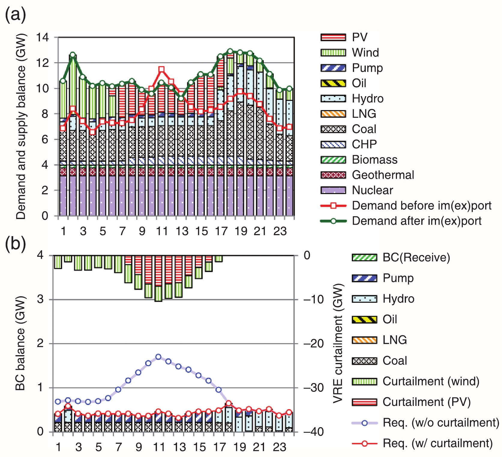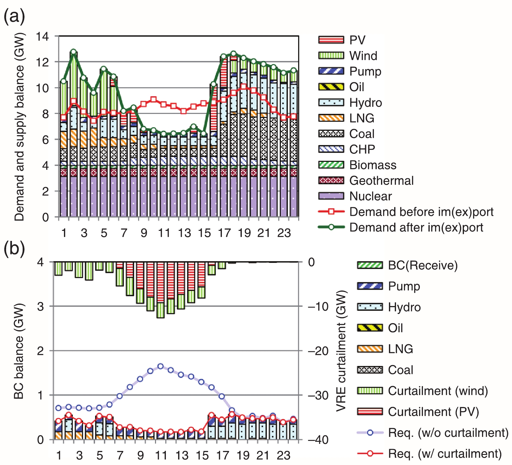 自2016年巴黎协定生效后,可再生能源的增长促进了低碳经济在全球范围内的发展。由于太阳能光伏发电、风电等间歇性可再生能源的增长,电力系统对传统发电厂的调峰能力提出了更高的要求,要求通过常规发电厂来调节不断增加的电网波动。除了常规发电厂的调节外,还有很多电网调峰方式:改善电网结构、储能和需求响应等。充分利用所有可能的调峰方式,对实现间歇性可再生能源发电系统经济利用的最大化十分必要。在日本,政府引入了上网电价补贴政策,同时启动了电力市场化改革,成功提高了间歇性可再生能源的份额。但同时,日本九大电网呈鱼骨状串联的独特电力系统结构又使不断增长的间歇性可再生能源市场面临巨大挑战。本文对2030年日本电力系统的灵活性价值进行了评估。一个新开发的生产成本模型被用于分析不同的间歇性可再生能源情形。模拟结果定量给出了各种调峰手段对发电成本和间歇性可再生能源弃用情况的影响,并阐明了电网灵活性对间歇性可再生能源弃用的影响机制。