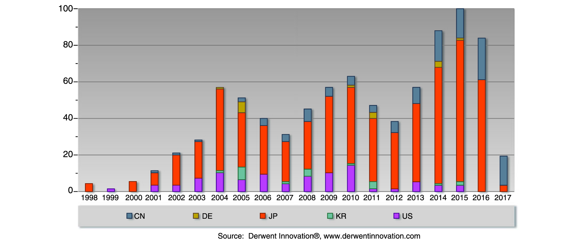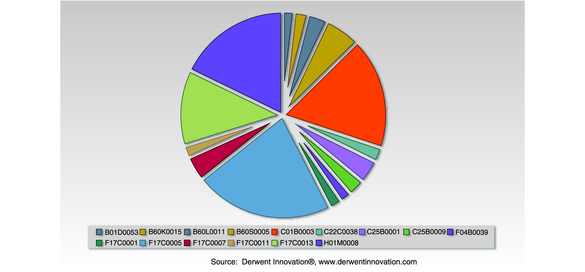 本文对加氢站技术的解析过程使用了德温特创新系统(Derwent Innovation System,DIS)进行数据筛选。研究人员可通过所述方法更好地理解和掌握加氢站技术的发展趋势。本文对加氢站相关专利技术的发展趋势进行了回顾,其结果表明加氢站技术的专利主要分布在日本、中国、美国和欧洲等国家和地区。日本引领了加氢站技术领域的发展方向,分析结果表明其专利技术主要来自神户制铁、新日本石油、丰田和本田。本文还对其他重要的专利申请人包括林德、现代和德士古进行了分析。最后本文提出了概括性观点,即使用专利分析方法是了解和评估加氢站商业发展趋势的有效切入点。