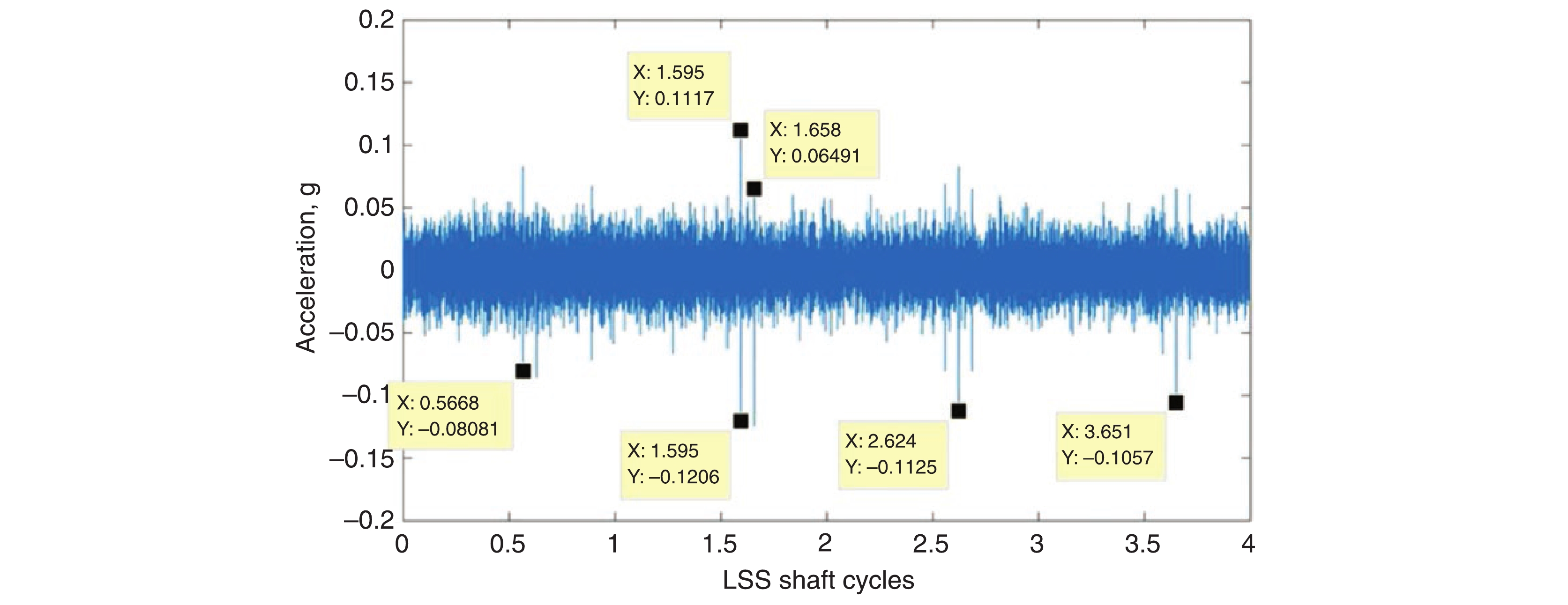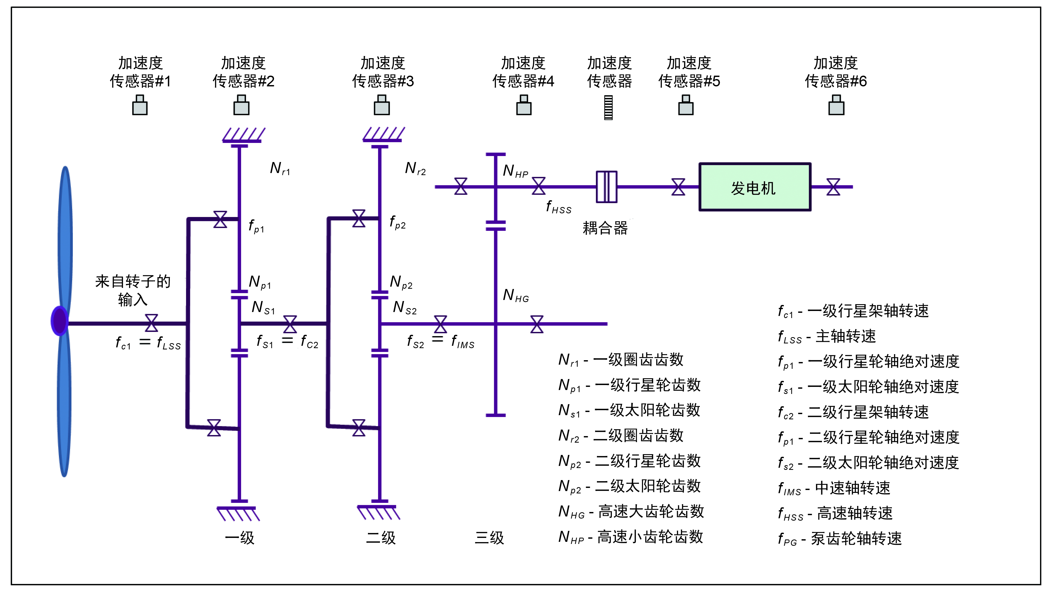 本文介绍了一种便携式风力发电机故障检测系统及其在风机传动链部件故障检测中的应用。基于振动测试和分析的便携式故障检测仪在常规旋转机械中的应用已有很久的历史,但在风力发电机中的应用并不广泛。究其原因是多样的,除了测试条件要求高外,更重要的是风力发电机传动链的结构多样性,运行状态的不确定性,以及不同部件损伤机理的复杂性,都使得基于常规旋转机械故障检测的方法应用于风力发电机时可测率和准确率较低,从而影响了便携式系统的广泛应用。本文利用北京低碳清洁能源研究院开发的一种基于风力发电机传动链运动学和不同旋转速度下各部件故障的动力学为基础的振动分析方法,对同步采集的加速度和高速轴速度信号,通过齿轮箱内任意指定轴的同步分析等多种方法进行故障检测,提高了对各类部件尤其是有关中低速轴部件损伤检测的可行性和精准度。本文对3个风机的实测案例进行了分析,涵盖了低速和中速行星齿轮内圈齿轮损伤、低速行星齿轮损伤和主轴承损伤等典型的齿轮箱检测中较难处理的损伤模式,验证了该振动分析方法的可行性和精确性。