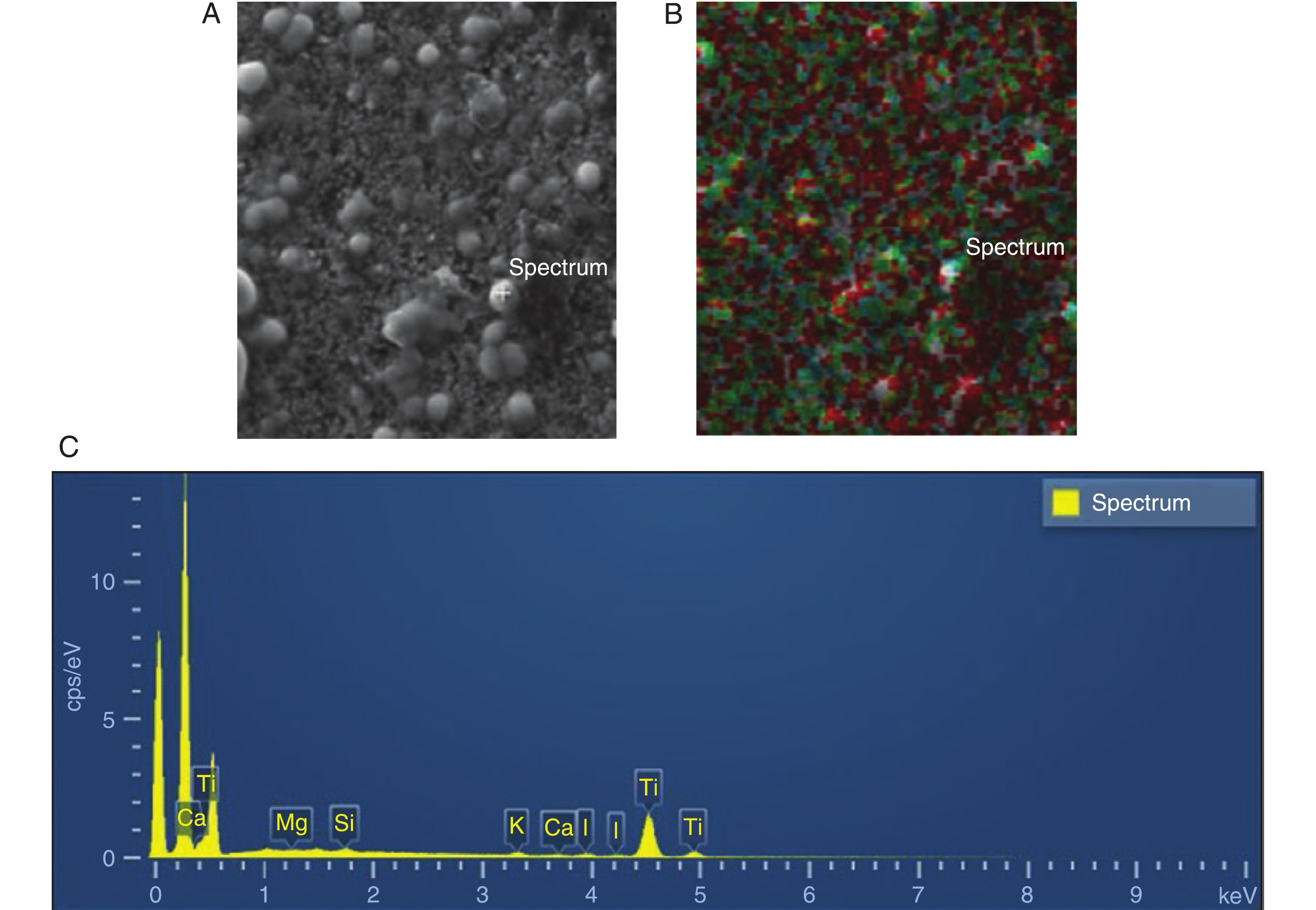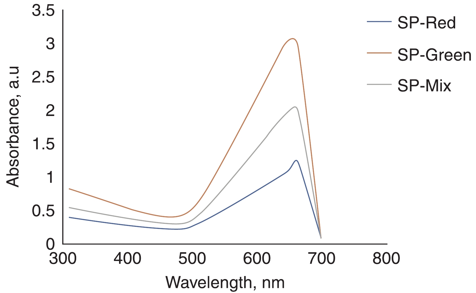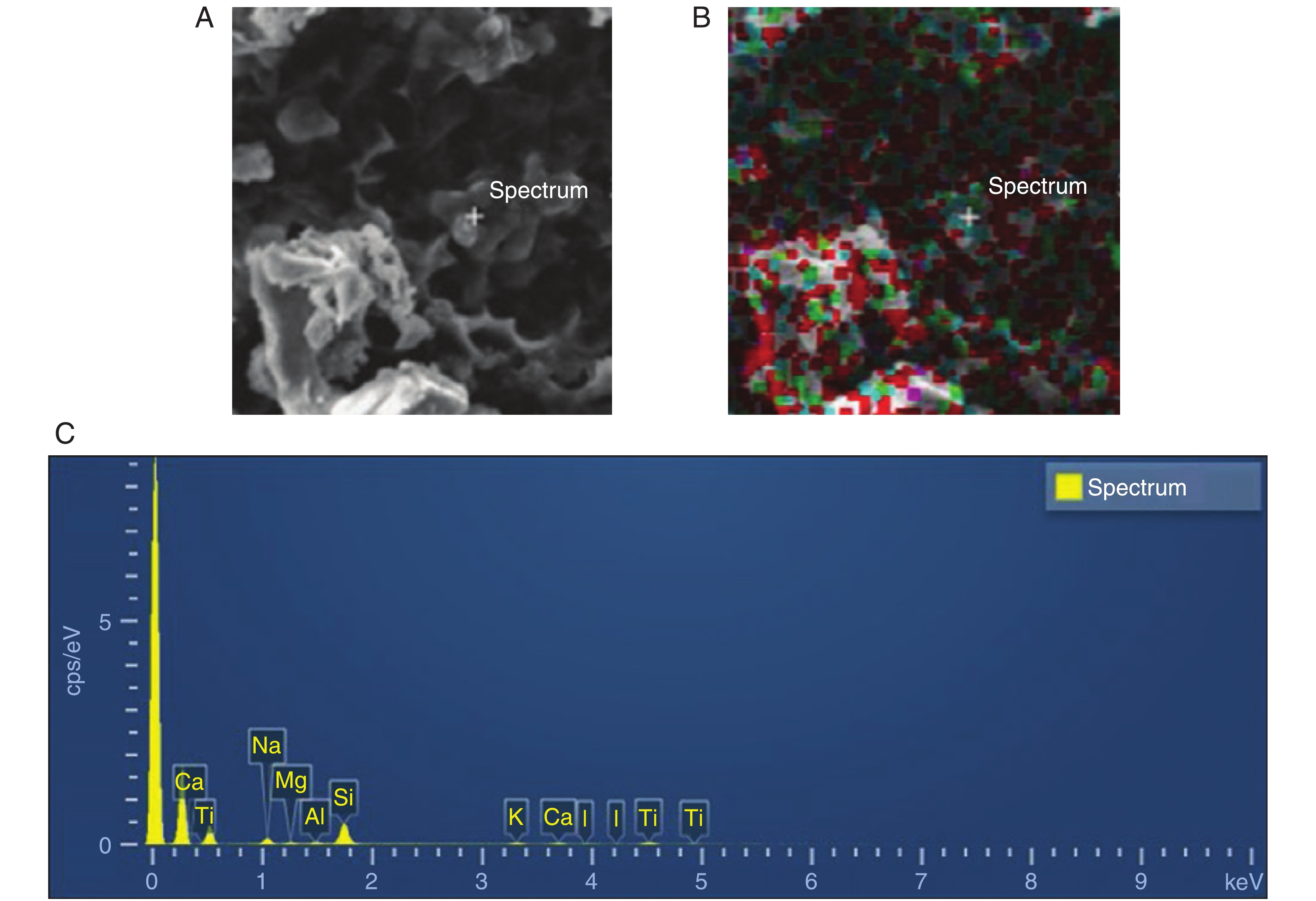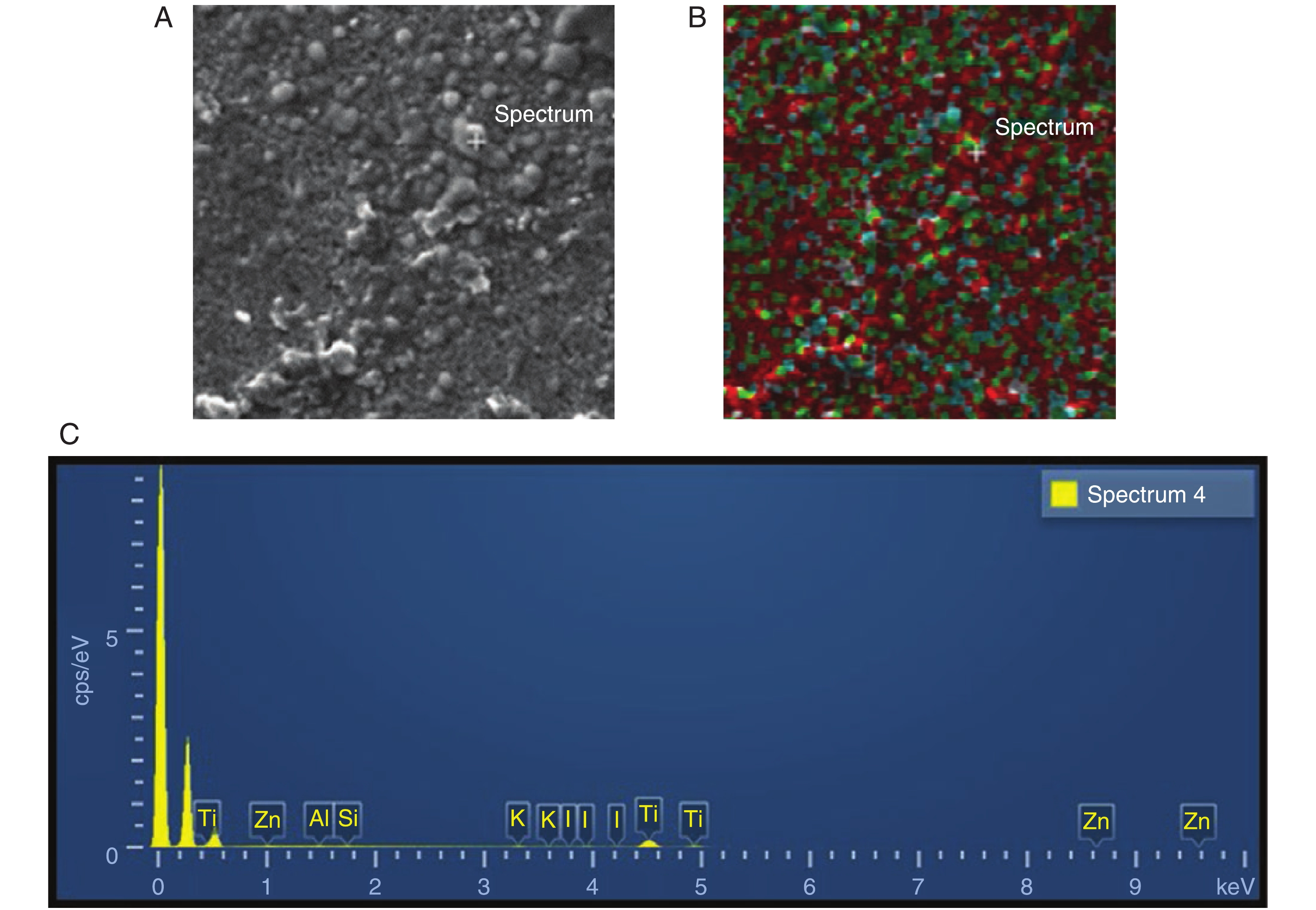 本文用扫描电子显微镜(SEM)及能量色散X射线(EDX)分析了番樱桃叶绿素染料太阳能电池的宏观表征。鉴于二氧化钛(TiO2)纳米材料及番樱桃叶绿素染料太阳能电池中含有类黄酮及桦木酸成分,故其效能得以提升。TiO2光电阳极是决定染料敏化太阳能电池(DSSCs)的光伏特性及阴影的基本要素,阴影拓宽了吸收光谱。此外,本文研究采用了多种颜色的番樱桃树叶,即红(SP-红)、绿(SP-绿)、红-绿混合(SP-混合)。SEM宏观分析结果发现TiO2-聚乙二醇(PEG)染料层为聚集体,呈不规则形状。EDX结果发现钛在 5 keV有一个峰,且所有成分均用SP-绿番樱桃树叶及氧钛比为3.47∶1的FTO-TiO2/PEG测试。用数字万能表测量电压-电流(IV),结果表明SP-绿DSSC效果最好,其短路电流密度(ISC)为0.0047 mA/cm2,开路电压(Voc)为0.432 V,充电系数(FF)为0.749,效率(η)为3.724%。