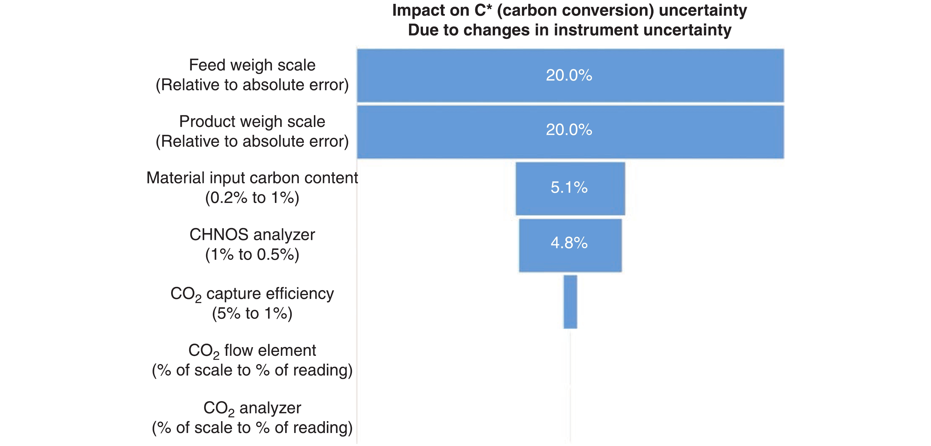 NRG COSIA Carbon XPRIZE竞赛奖金高达2000万美元,该竞赛专注于新型碳捕捉与利用技术的发展及推广。在优胜团队评分及排名标准中,数据可信度位于前列。为保证提交数据的质量,邀请独立第三方认证机构审查各候选技术及数据集。Carbon XPRIZE参赛团队演示了多种二氧化碳利用技术,其技术的成熟度及规模各不相同。经敏感性分析后发现,测量对流程性能参数影响的早期评估影响合适精度仪器的选择。除了确保合适精度外,早期评估还能避免购买最“好”的仪器,从而降低仪器成本,并降低了不确定性。预先做好计划,并遵守良好的工程惯例、测量惯例,或可降低不确定性及系统成本,提高仪器可用性,并优化数据系统。