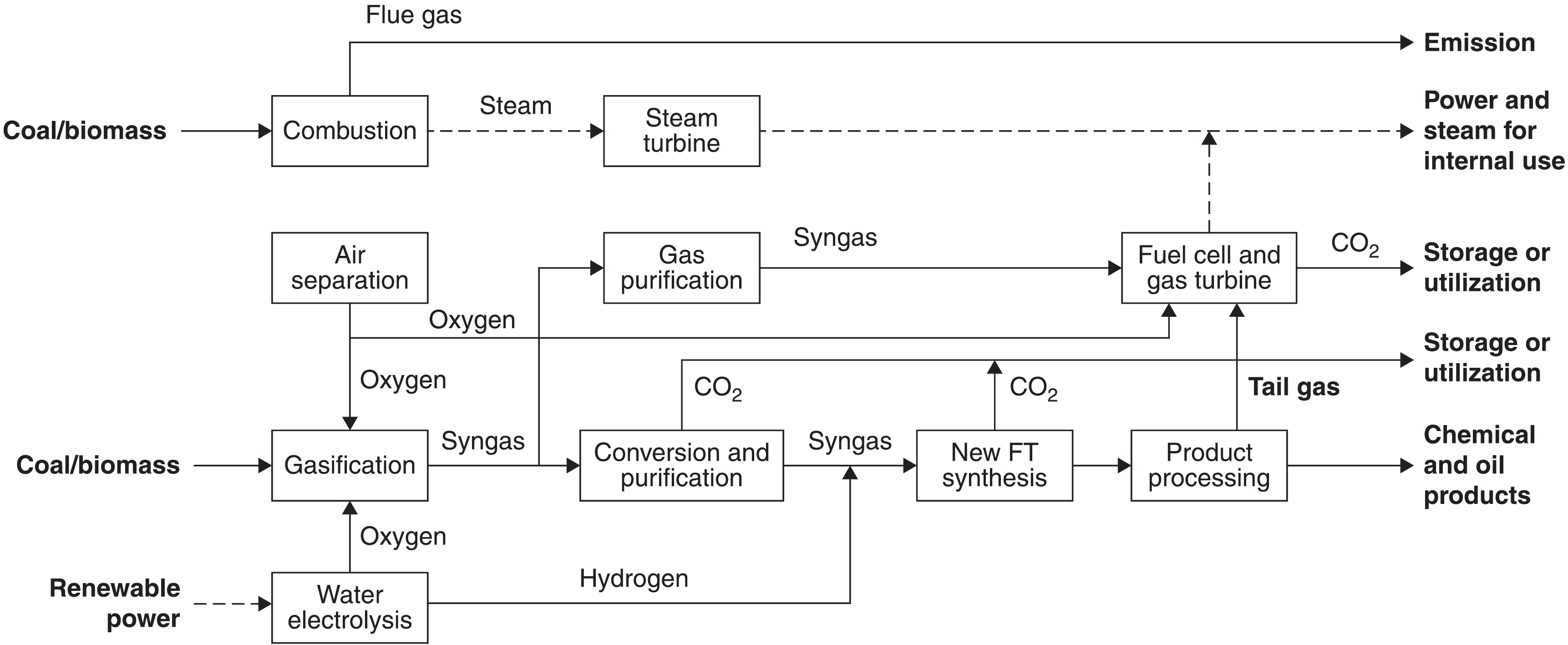我国已建成煤间接液化装置产能约800万t/a,碳排放规模约6000万t/a以上,在碳中和背景下,煤间接液化面临着巨大的碳减排压力。本文研究了我国煤间接液化实现碳中和的路径,构建了碳中和煤间接液化系统,通过引入绿氢和CCS,大幅降低了煤气化变换过程中碳排放量;使用碳中性的生物质替代部分煤炭进行共气化和燃烧,实现了煤间接液化碳中和。以百万吨级碳中和煤间接液化系统为例,对煤间接液化过程不同碳减排路径进行计算和成本分析,结果表明目前采用生物质替代碳减排成本较低(31—125元/tCO2),而绿氢替代碳减排成本较高(84—422元/tCO2),CCS碳减排成本适中(96—148元/tCO2),不同路径各有优缺点,可以综合使用。深入调研和总结了碳中和煤间接液化系统关键技术进展及存在的问题,并提出了下一步攻关技术方向。本文提出的煤间接液化系统碳减排路径,可实现化石能源与可再生能源融合发展,助力高碳煤化工产业实现碳达峰、碳中和目标。
