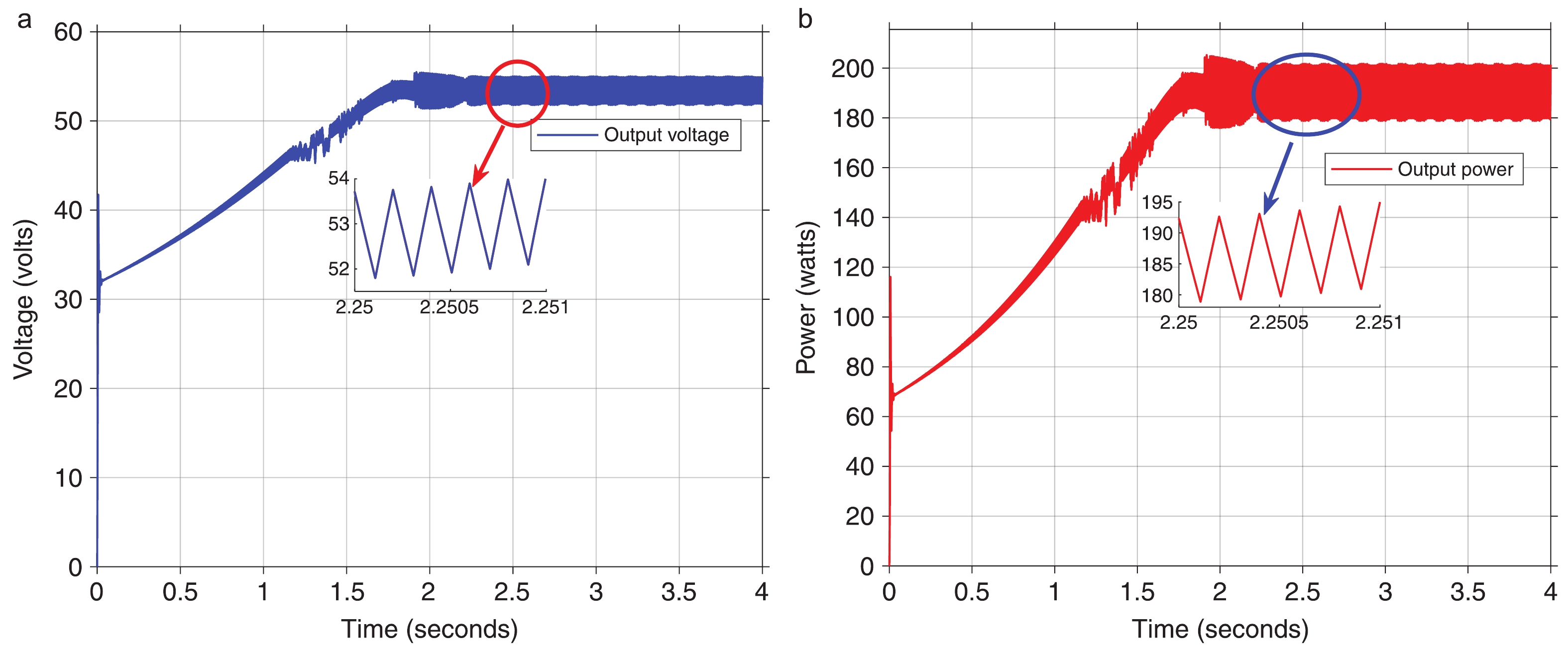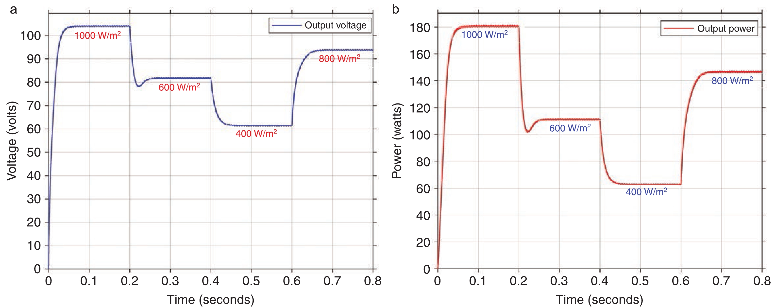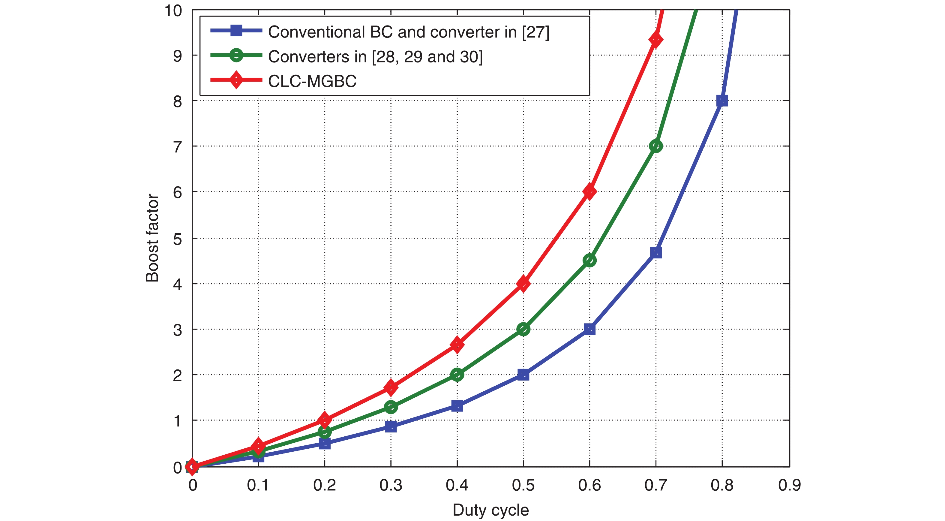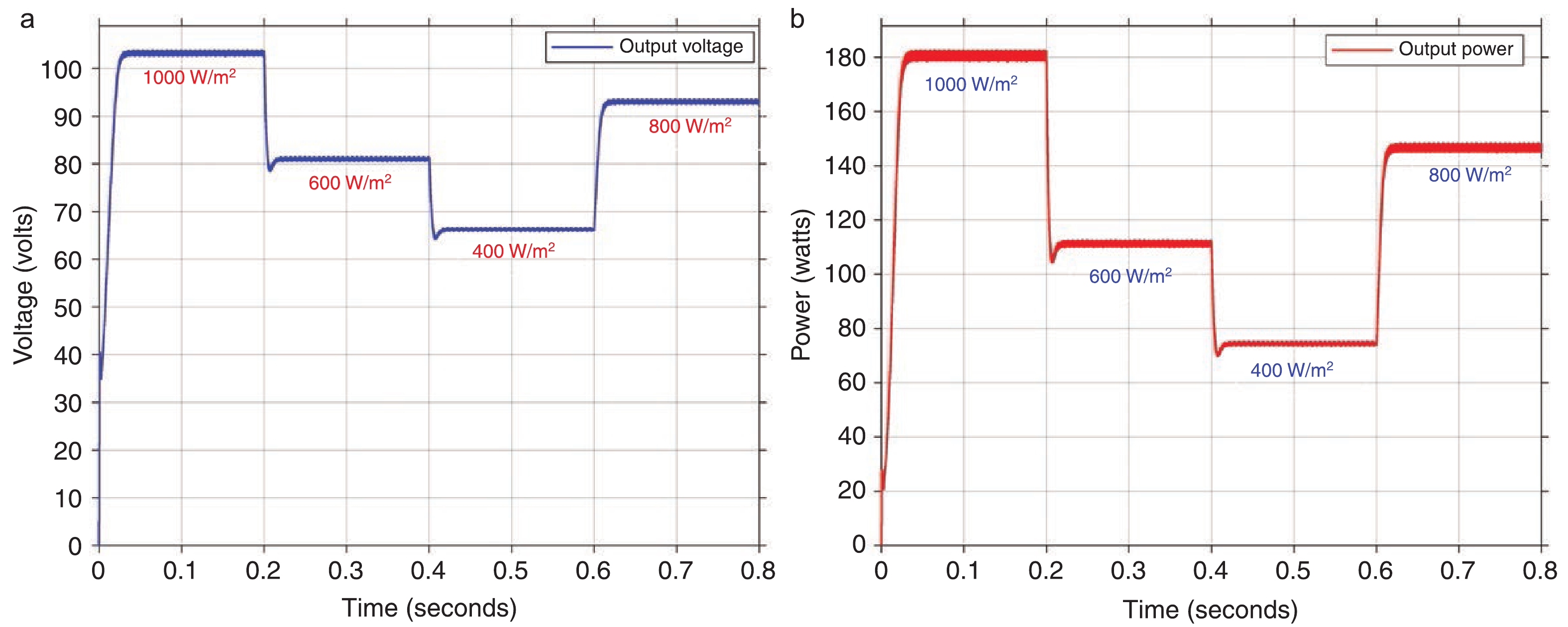 本文分析了用于太阳能光伏(SPV)并网逆变器发电系统的高增益升压变换器(MGBC)的性能。基于电容电感电容(CLC)的MGBC可将SPV系统输出电压提升至所需水平。升压变换器(BC)的升压幅度/升压水平由CLC芯数决定。本文比较了建议MGBC与各种传统BC的升压因数及元件个数,从而提出了一种混合模糊逻辑-扰动观察最大功率点跟踪器(HFL-P&O MPPT),该HFL-P&O MPPT可用于监测SPV系统的Pmax(最大功率)。此外,本文还比较分析了建议MPPT与传统P&O及基于模糊逻辑(FLB)的MPPT在基于CLC的MGBC上的应用,包括升压时间、电压纹波率(%)、稳态时间及升压因数。本文用MATLAB/Simulink工具分析了开发模型在不同辐照度下的输出特征。MPPT仿真结果表明MPP振荡最小时建议MPPT 0.015 s的升压时间明显优于传统MPPT及FLB-MPPT。建议CLC-MGBC升压因数颇高,为4。由传统逆变器将SPV功率注入电网,再用锁相环系统进行同步切换。逆变器输出电流的总谐波失真为1.66%,在IEEE标准容许范围内。