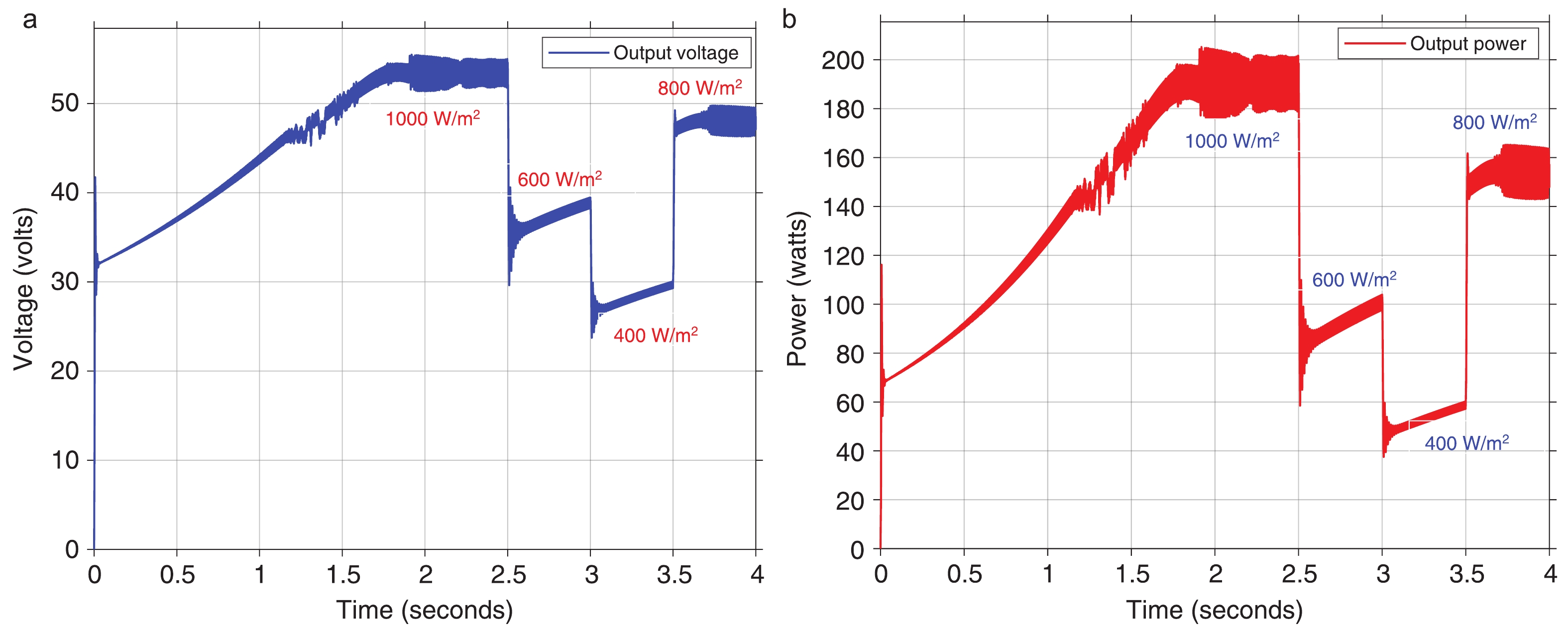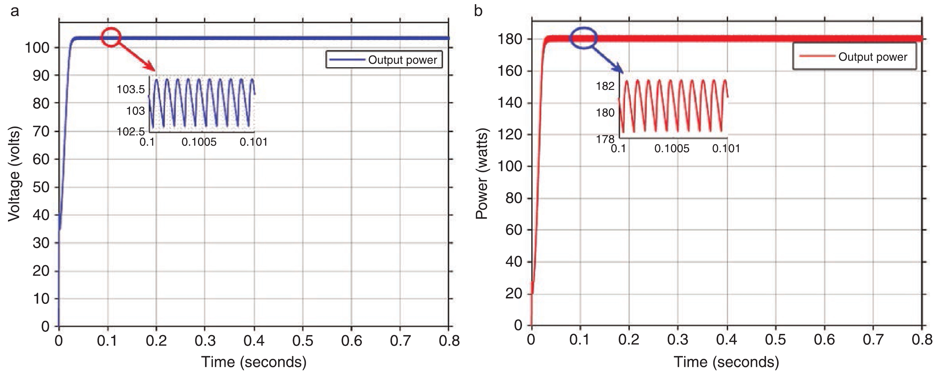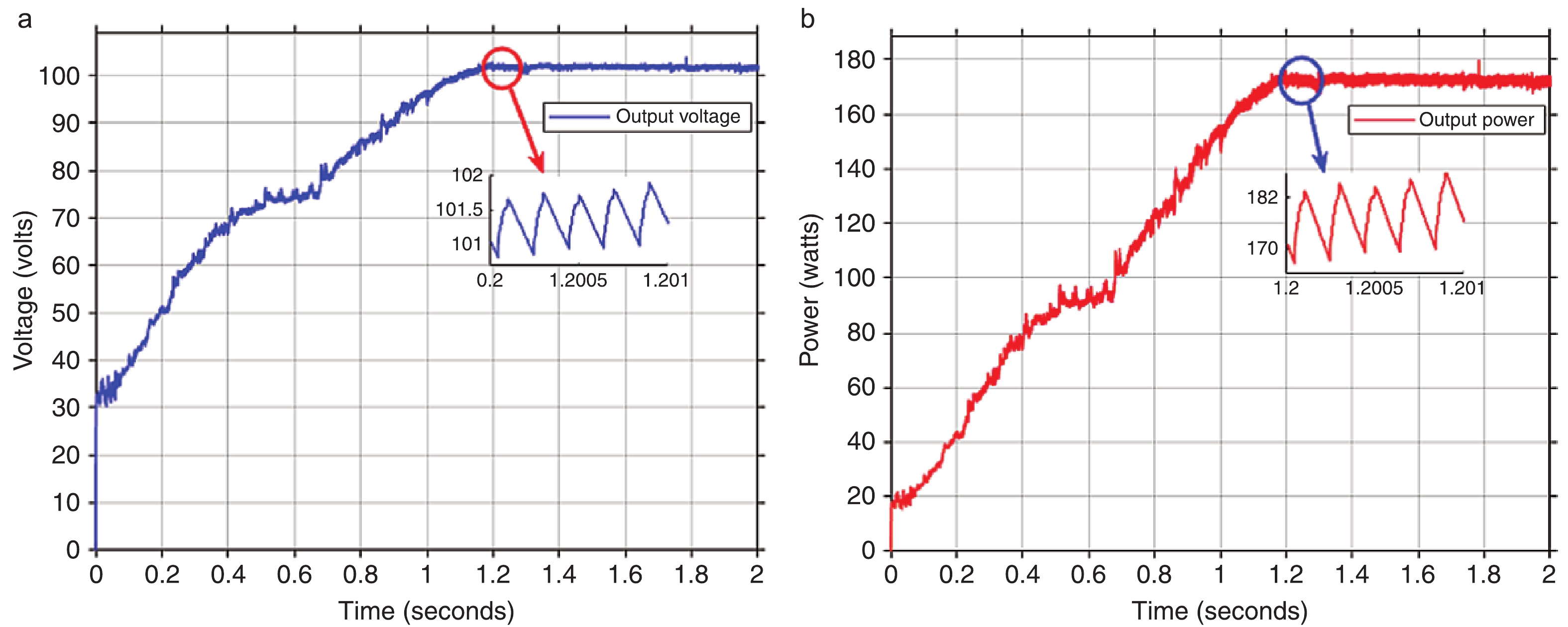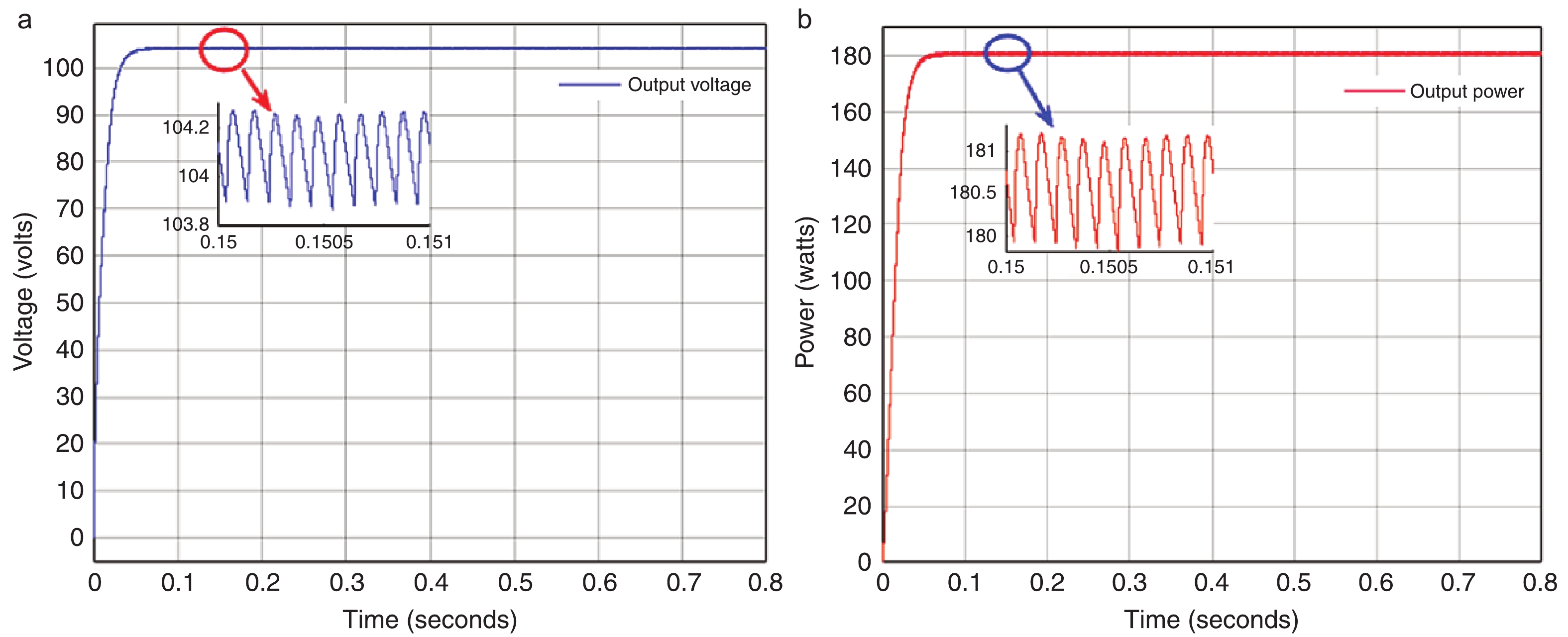 本文分析了用于太阳能光伏(SPV)并网逆变器发电系统的高增益升压变换器(MGBC)的性能。基于电容电感电容(CLC)的MGBC可将SPV系统输出电压提升至所需水平。升压变换器(BC)的升压幅度/升压水平由CLC芯数决定。本文比较了建议MGBC与各种传统BC的升压因数及元件个数,从而提出了一种混合模糊逻辑-扰动观察最大功率点跟踪器(HFL-P&O MPPT),该HFL-P&O MPPT可用于监测SPV系统的Pmax(最大功率)。此外,本文还比较分析了建议MPPT与传统P&O及基于模糊逻辑(FLB)的MPPT在基于CLC的MGBC上的应用,包括升压时间、电压纹波率(%)、稳态时间及升压因数。本文用MATLAB/Simulink工具分析了开发模型在不同辐照度下的输出特征。MPPT仿真结果表明MPP振荡最小时建议MPPT 0.015 s的升压时间明显优于传统MPPT及FLB-MPPT。建议CLC-MGBC升压因数颇高,为4。由传统逆变器将SPV功率注入电网,再用锁相环系统进行同步切换。逆变器输出电流的总谐波失真为1.66%,在IEEE标准容许范围内。