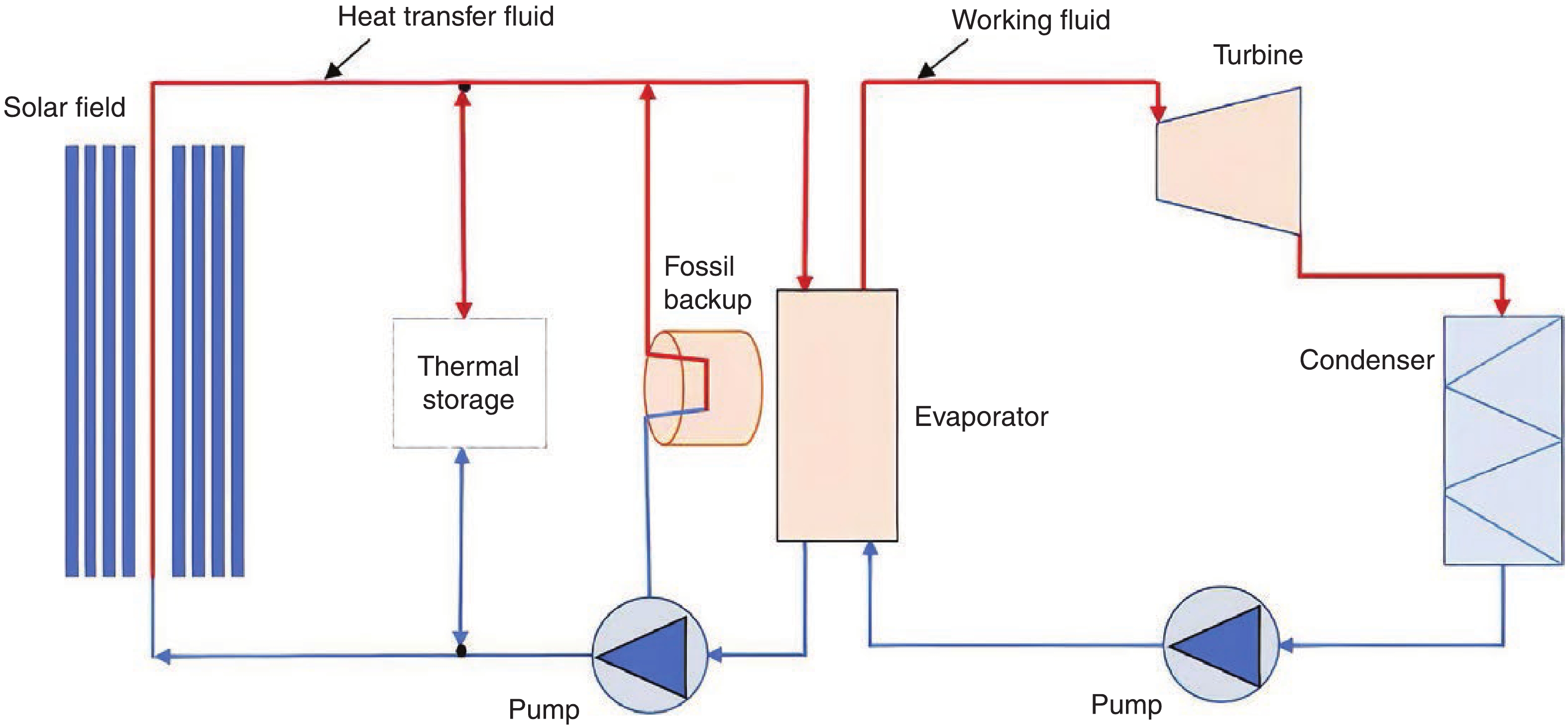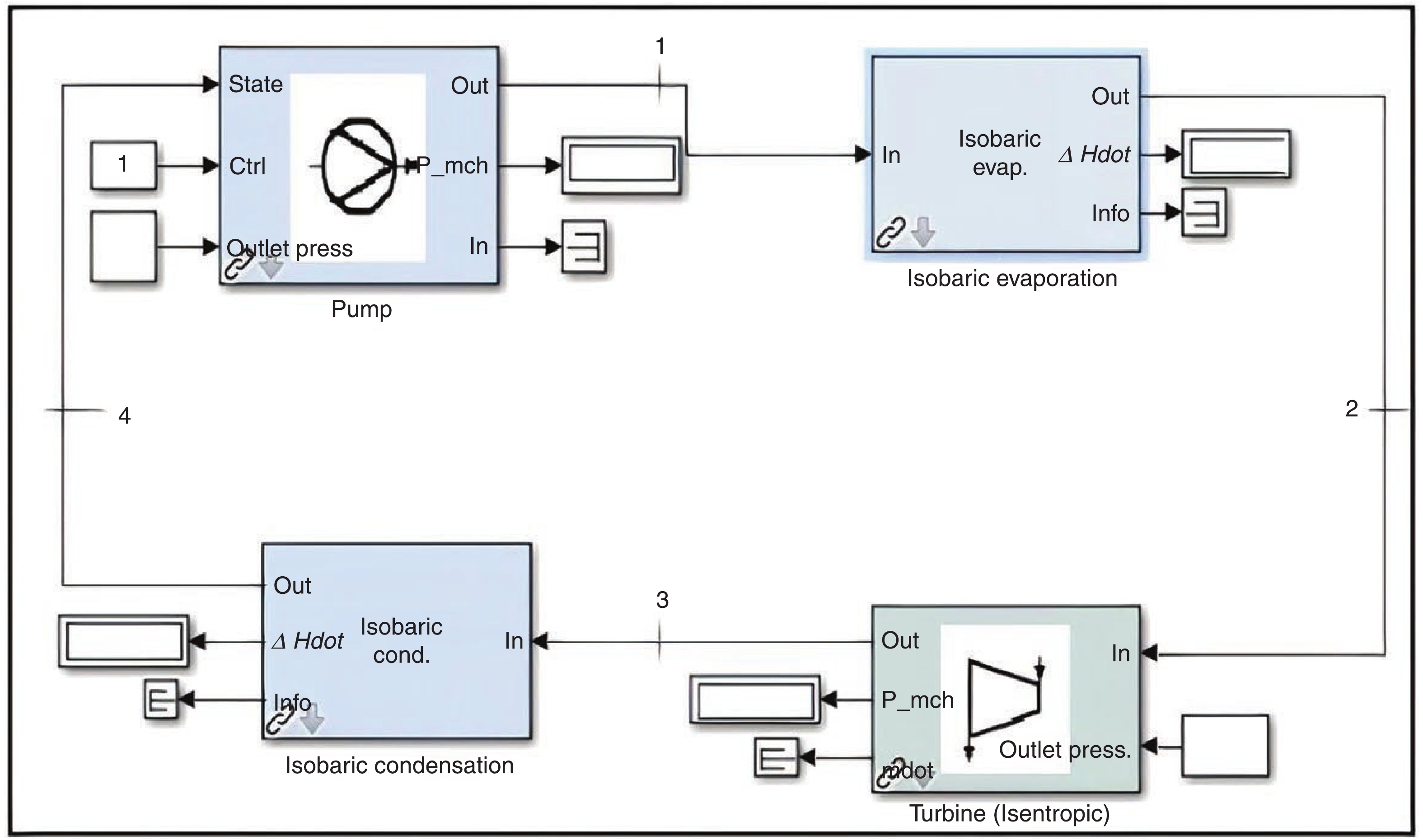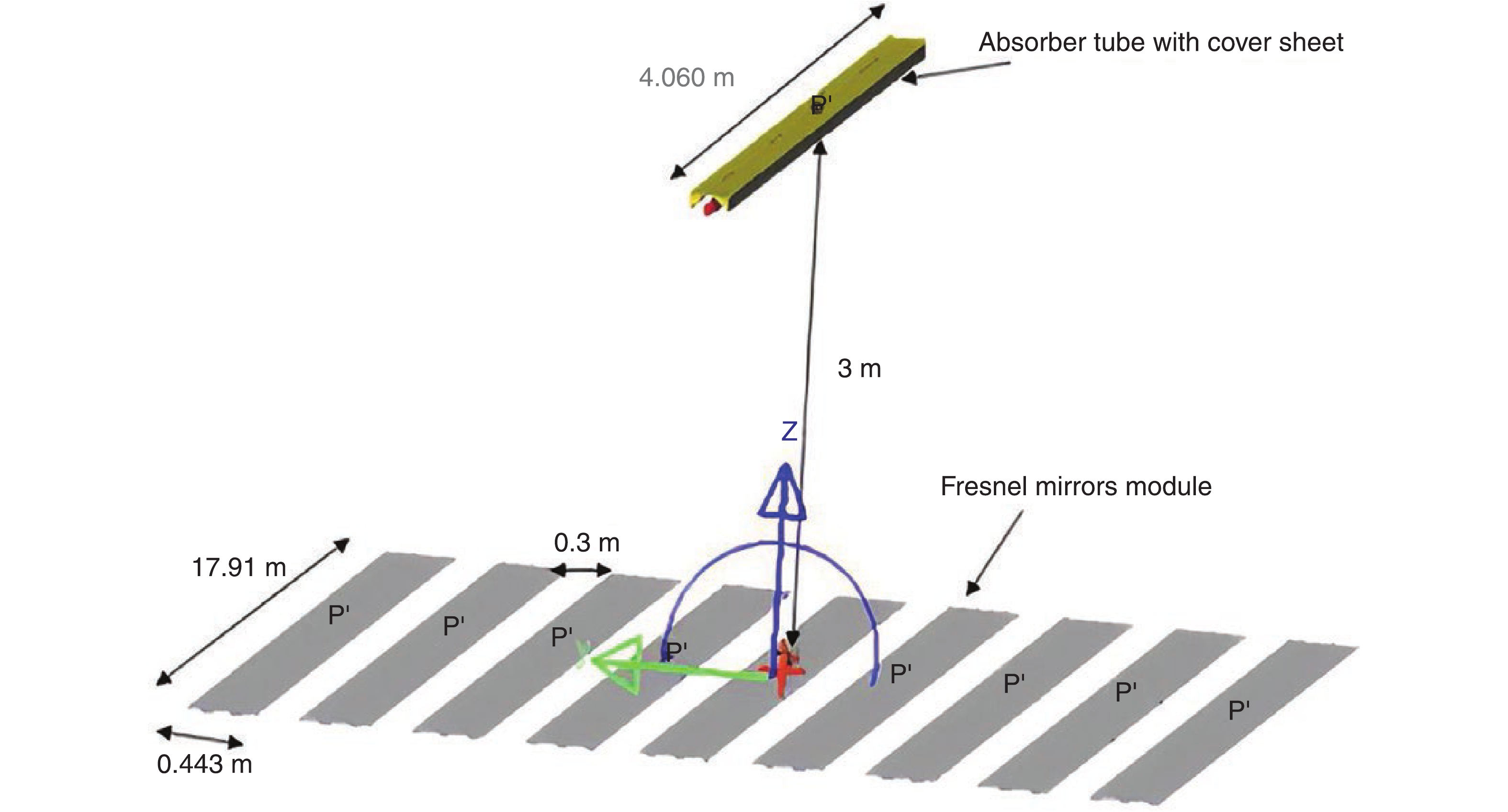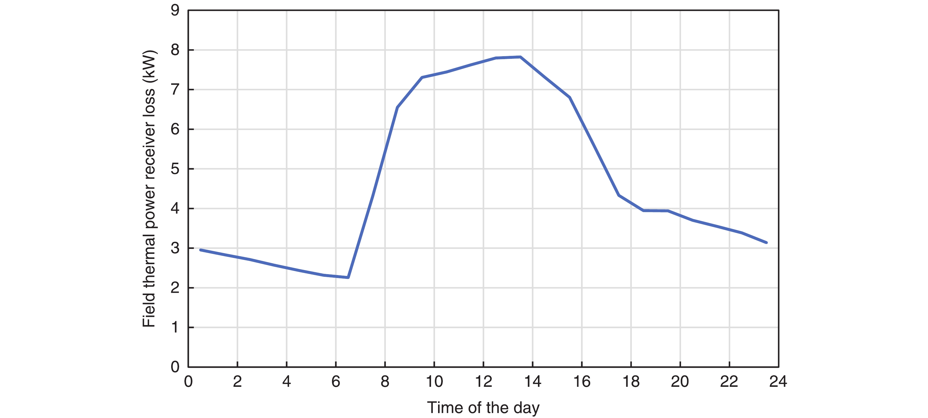 有机朗肯循环(ORC)可与线性菲涅耳反射器(LFR)耦合用于利用低品位热源。本文介绍了在西班牙阿尔马特雷特(Almatret, Spain)气候条件下对小型LFR-ORC发电系统的研究工作。文中利用热力学方程建立了数学模型,并进行了仿真模拟,用以对LFR系统的光学性能和ORC系统的热学性能进行评价。在太阳能镜场中使用的传热流体(HTF)为Therminol-62,而在ORC发电系统中的工质则是NOVECTM 649。该LFR系统集成了配备双罐系统的蓄热装置单元,并通过换热器存储太阳辐射热能。在下午1:00的日间峰值运行时段中,LFR系统集热器的输出热量为108 kW,热损失为7.872 kW。在特定设计工况下,ORC透平的机械输出功率为7.296 kW,双罐蓄热系统可在日落后为发电站增加4 h的运行时间。