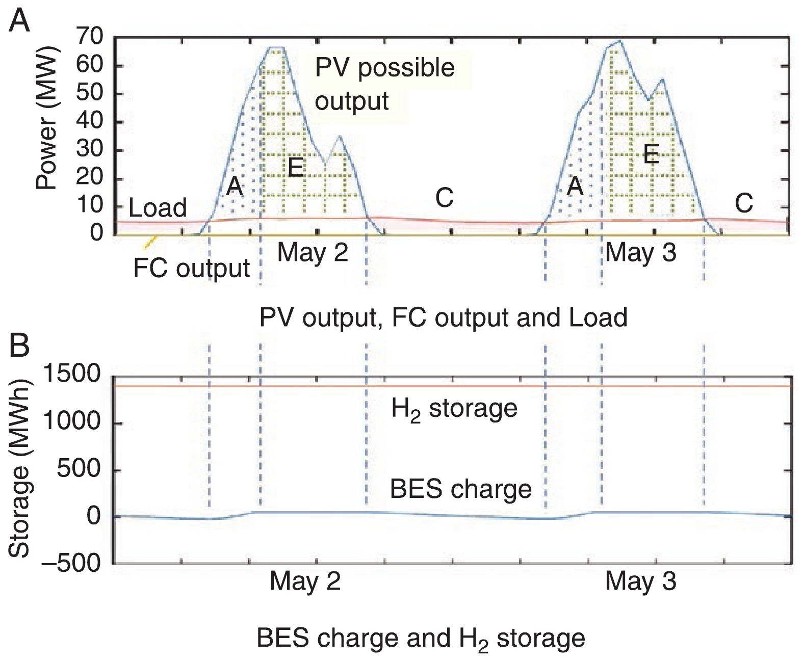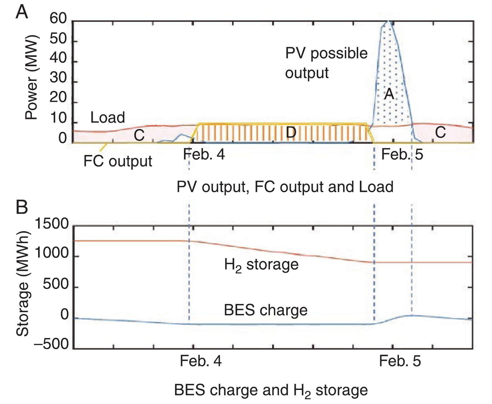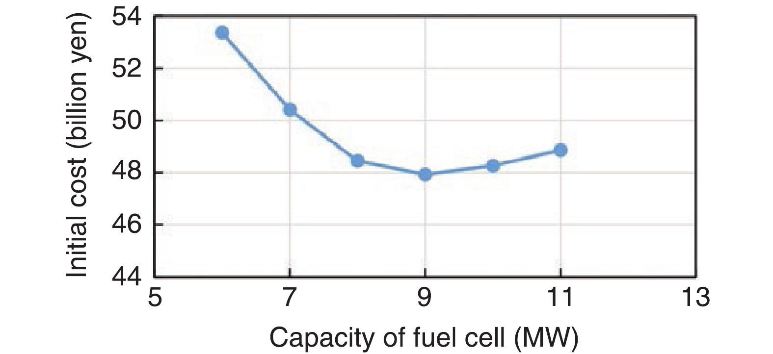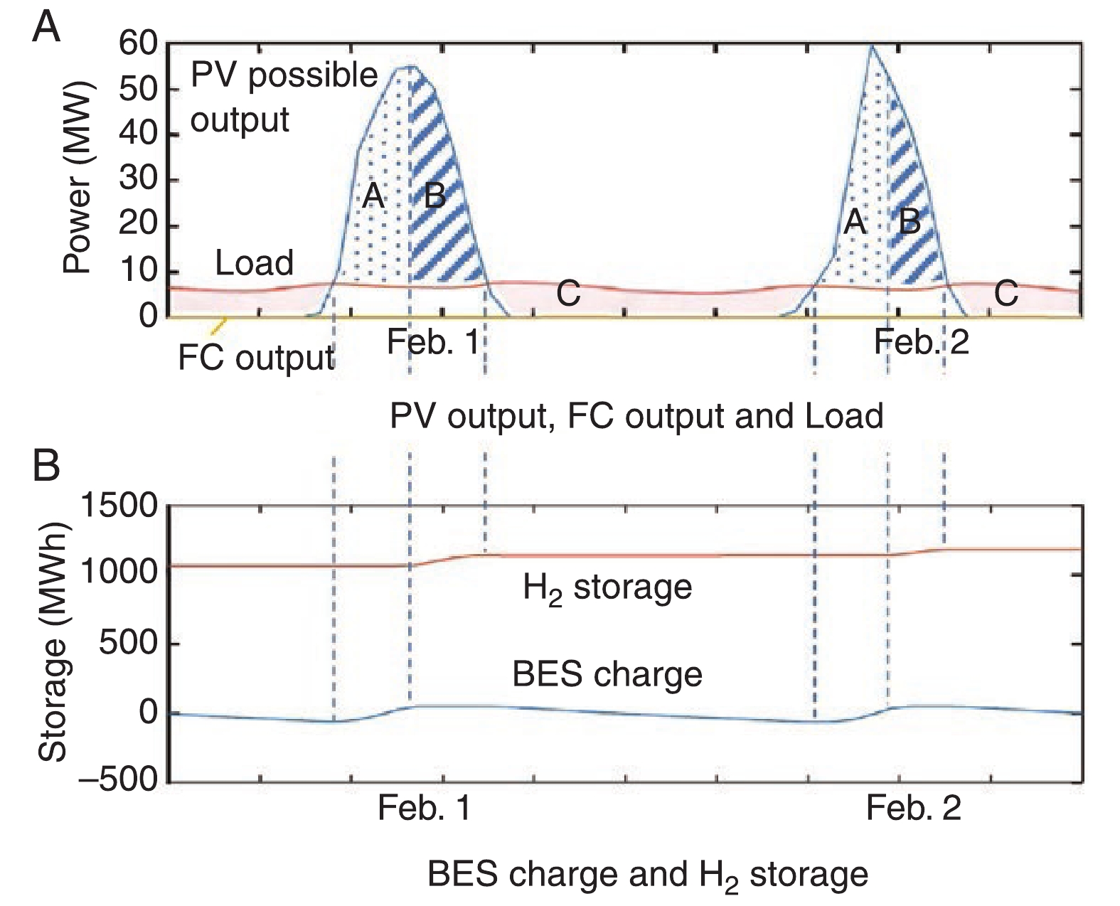 本文介绍了在引入可再生能源的情况下于小规模的(网外)发电系统中进行氢气储能的目标、优势、系统组成、运行模式和预计结果。假定研究对象是一座偏远岛屿上的一套小规模发电系统,该发电系统由光伏发电装置、蓄电池、制氢系统、储罐和燃料电池构成,其产生的所有电力都来源于可再生能源(不使用需要化石燃料的柴油发电机)。以蓄电池和燃料电池的设备容量、运行方式为参数,研究了可以使总建造成本达到最低的具体条件。结果表明,富余倍率和氢气储能方案的采用可以降低建造成本。增加了氢气储能装置后的初始成本约为单独使用蓄电池方案的70%。这样的系统具有较好的成本效益,有助于日本今后在能源方面实现自给自足。