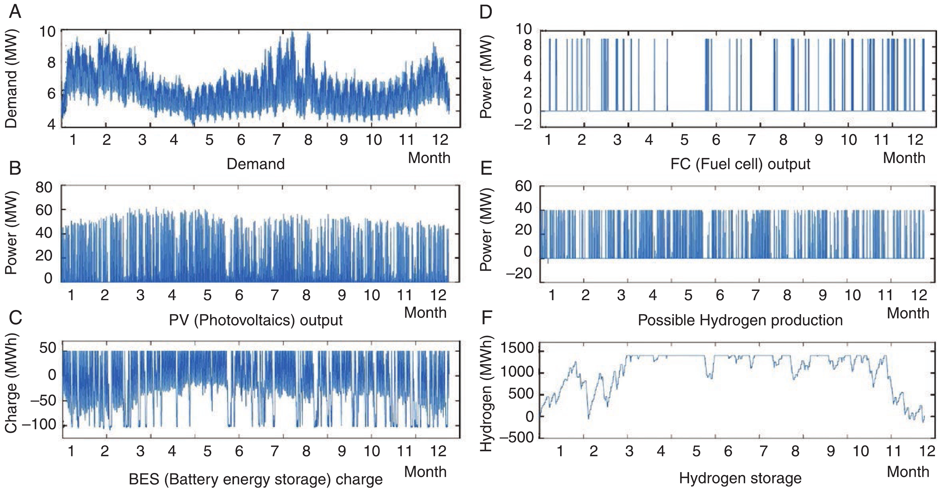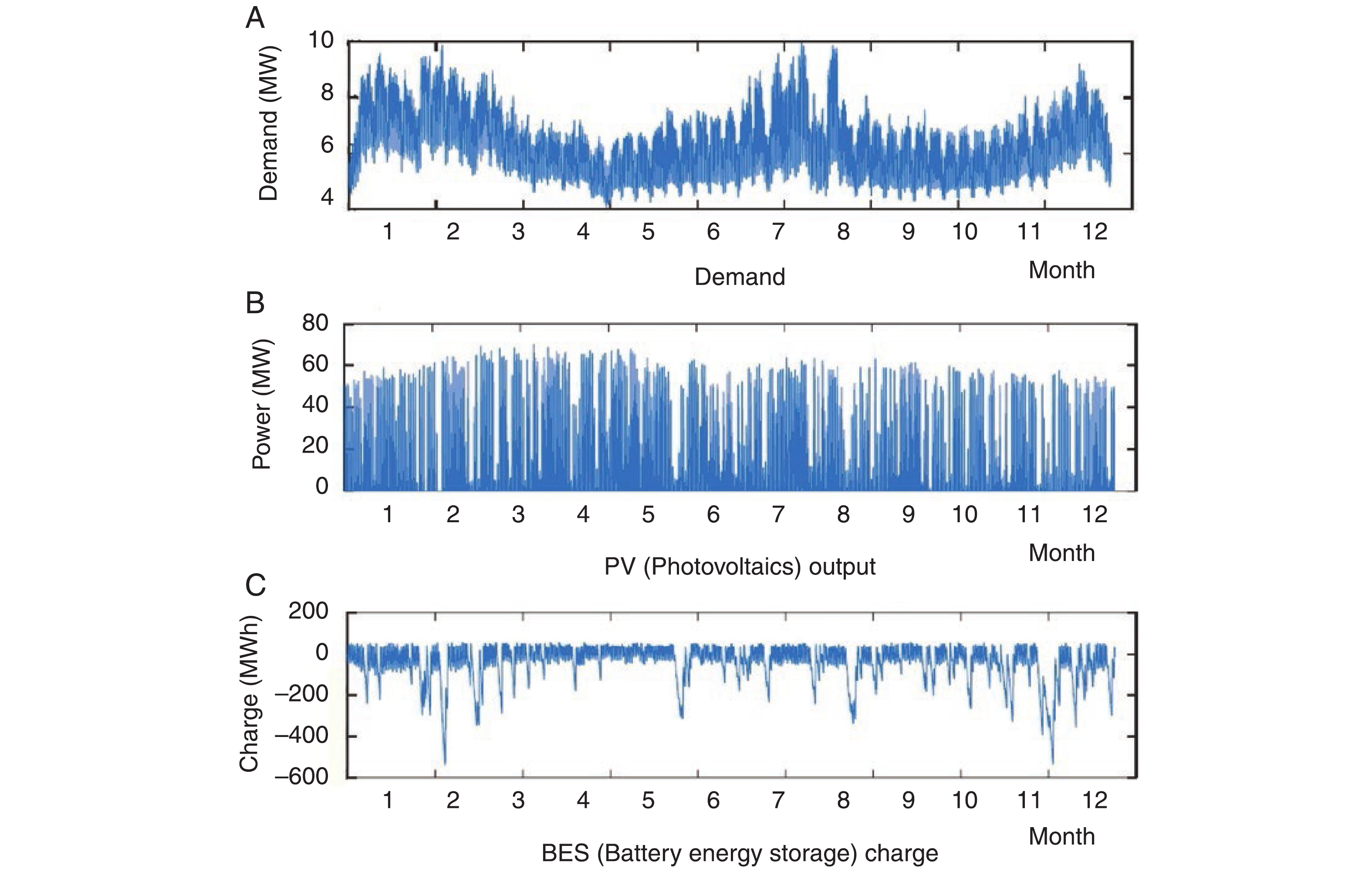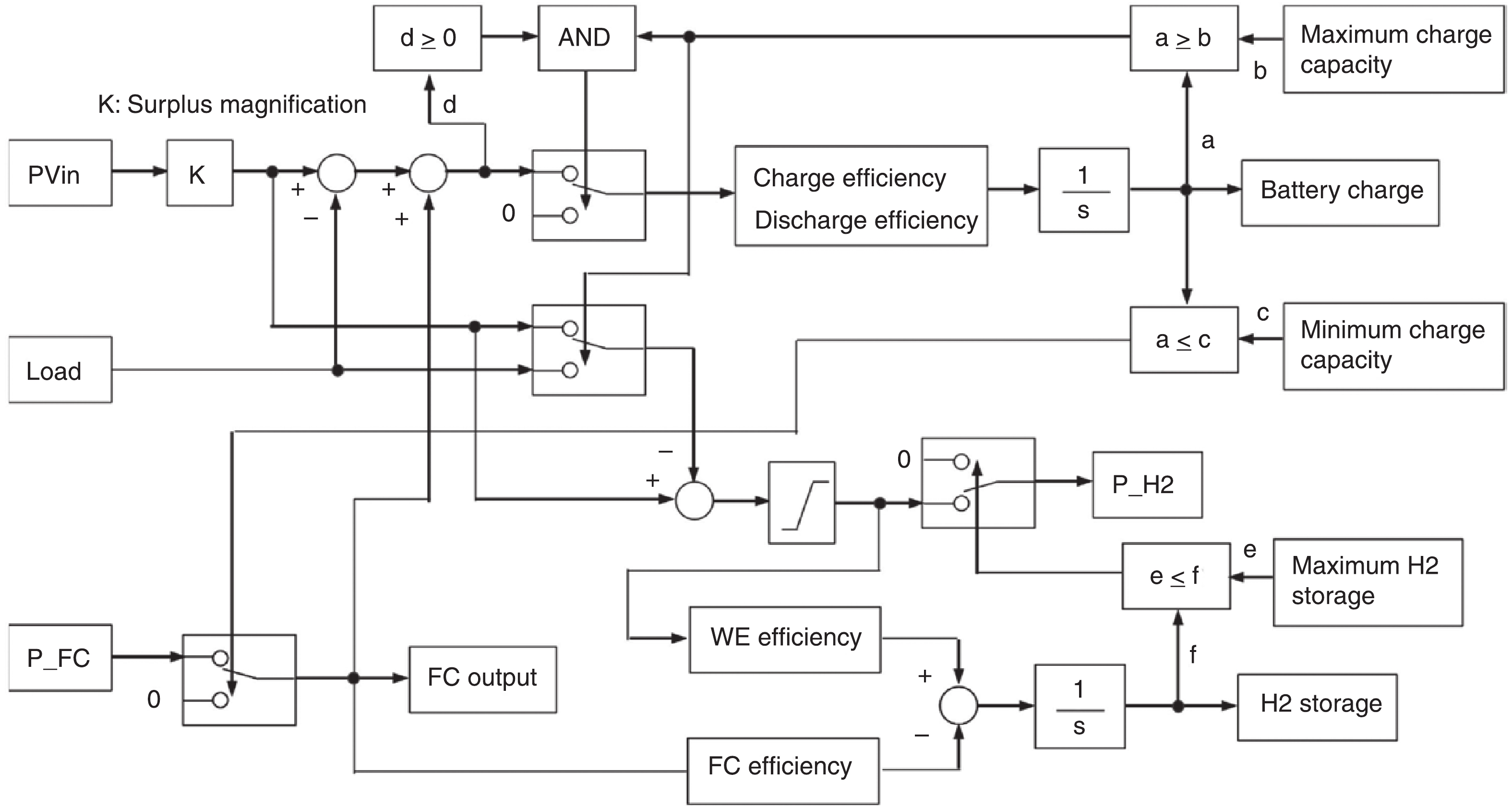 本文介绍了在引入可再生能源的情况下于小规模的(网外)发电系统中进行氢气储能的目标、优势、系统组成、运行模式和预计结果。假定研究对象是一座偏远岛屿上的一套小规模发电系统,该发电系统由光伏发电装置、蓄电池、制氢系统、储罐和燃料电池构成,其产生的所有电力都来源于可再生能源(不使用需要化石燃料的柴油发电机)。以蓄电池和燃料电池的设备容量、运行方式为参数,研究了可以使总建造成本达到最低的具体条件。结果表明,富余倍率和氢气储能方案的采用可以降低建造成本。增加了氢气储能装置后的初始成本约为单独使用蓄电池方案的70%。这样的系统具有较好的成本效益,有助于日本今后在能源方面实现自给自足。